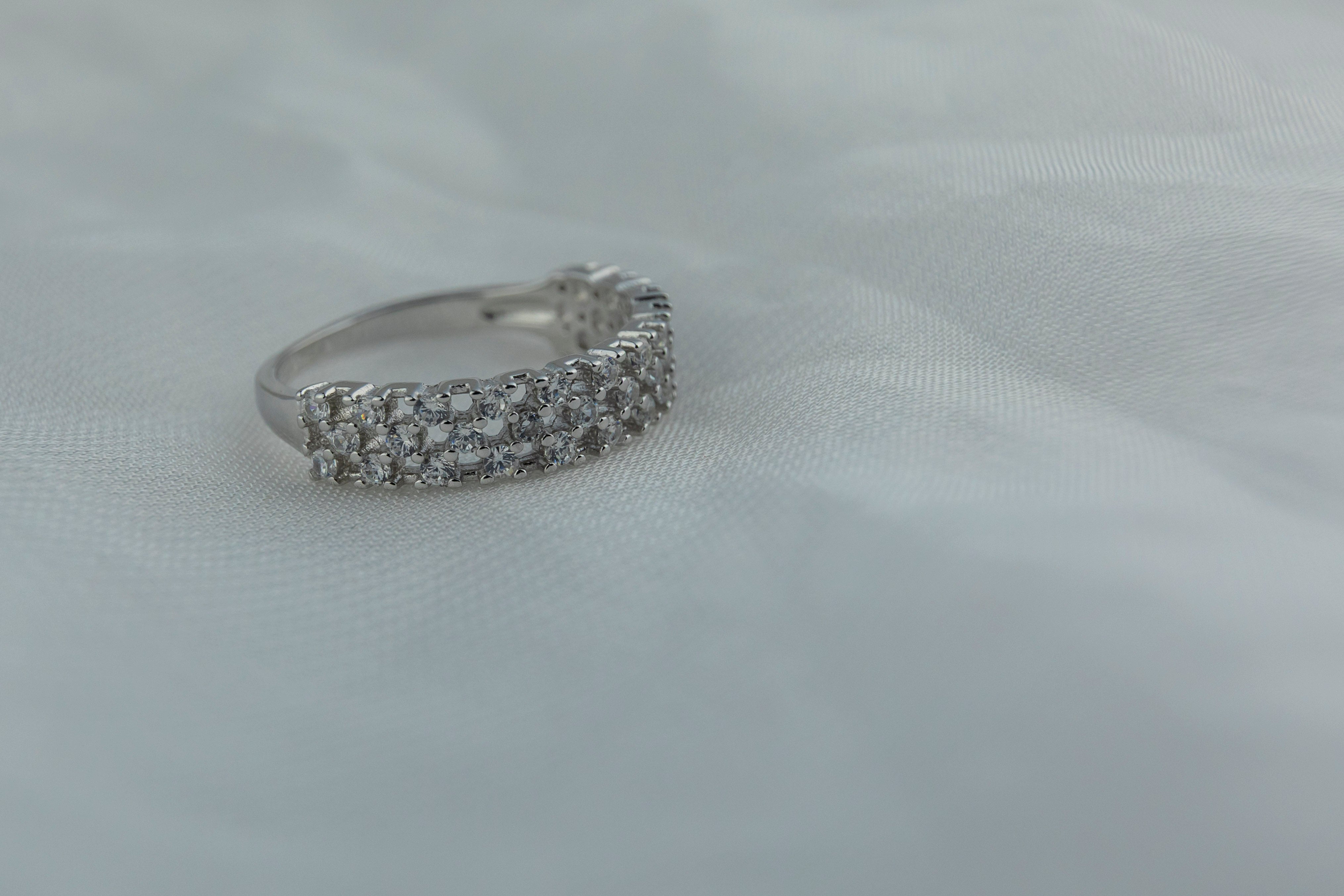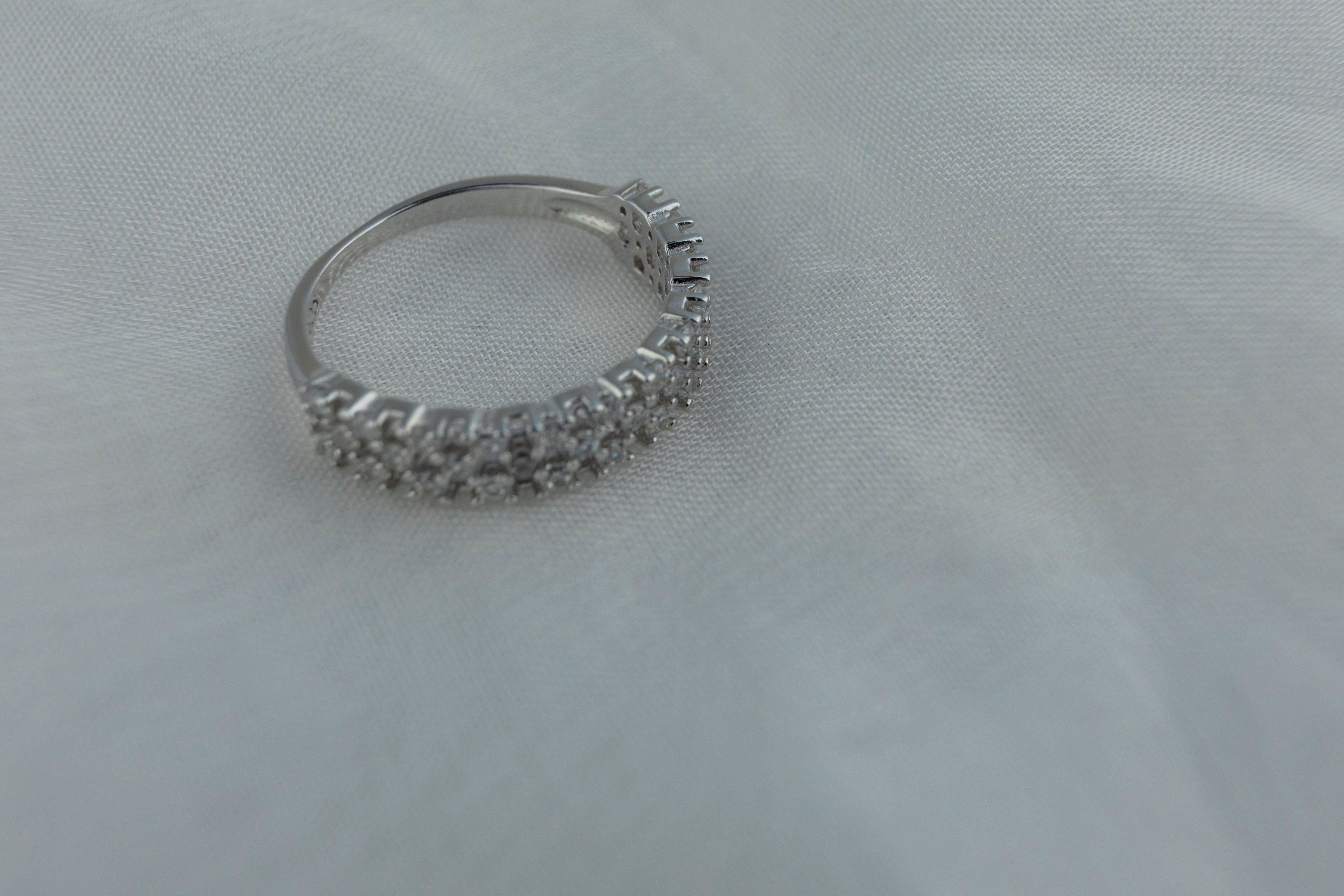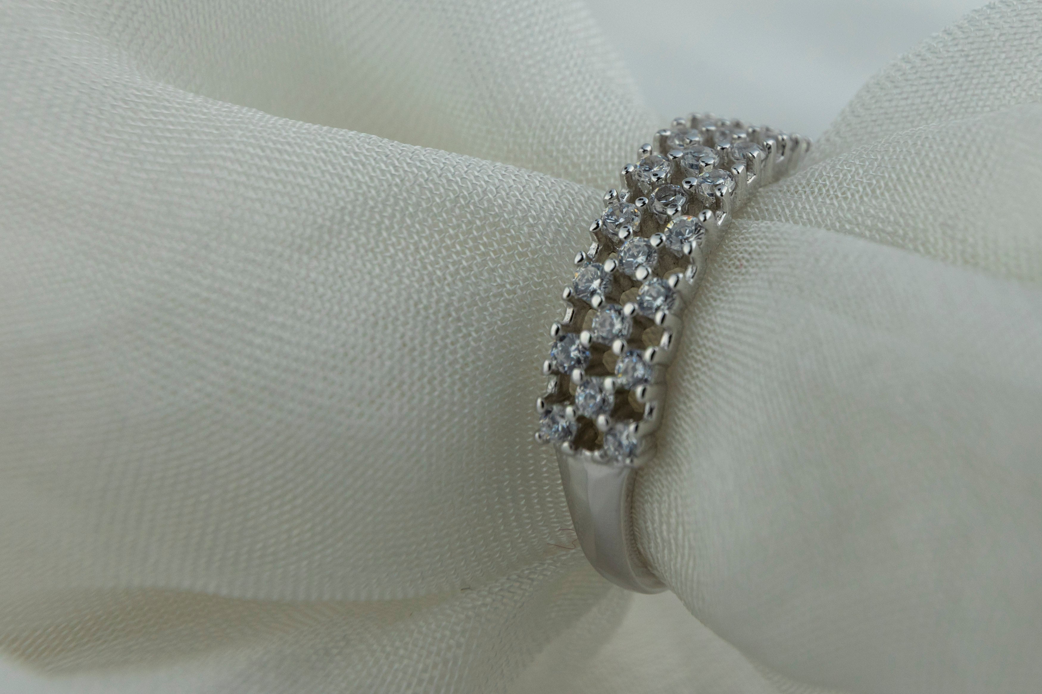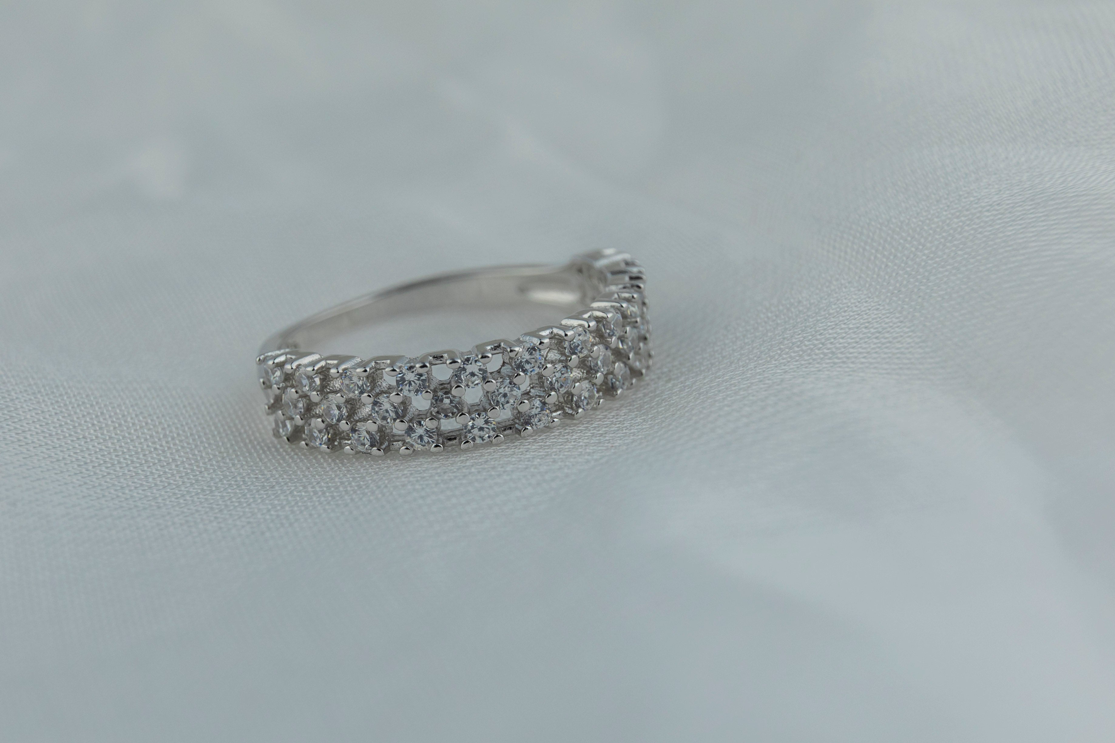 Elevate your style with this stunning triple-row band. Three unbroken lines of brilliant, shimmering stones create an air of sophisticated glamour. This ring is a timeless statement piece, perfect on its own or as a luxurious addition to your stack.