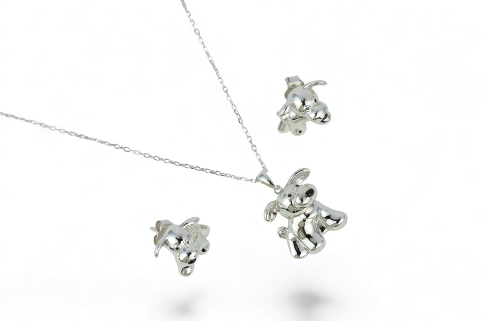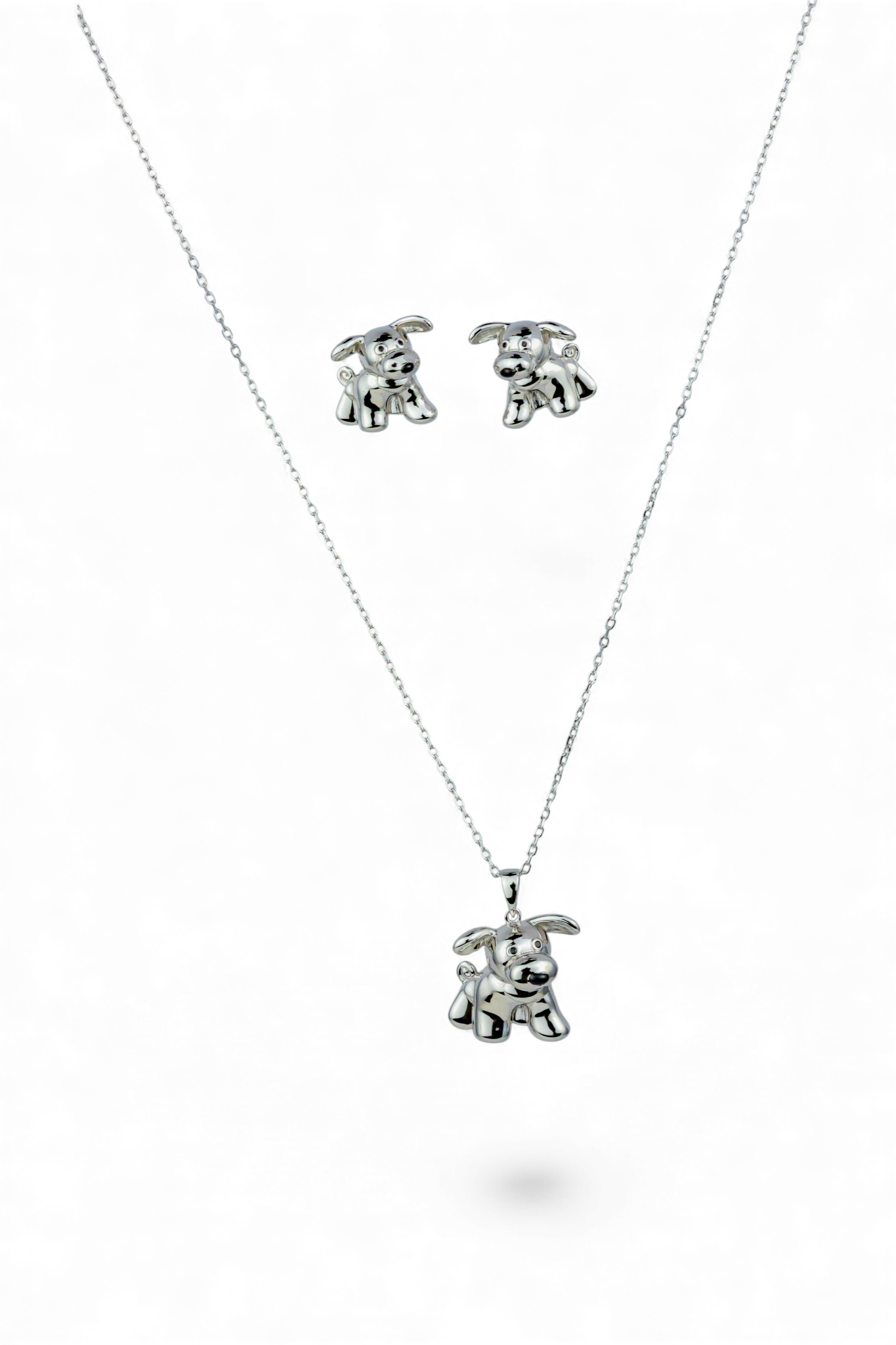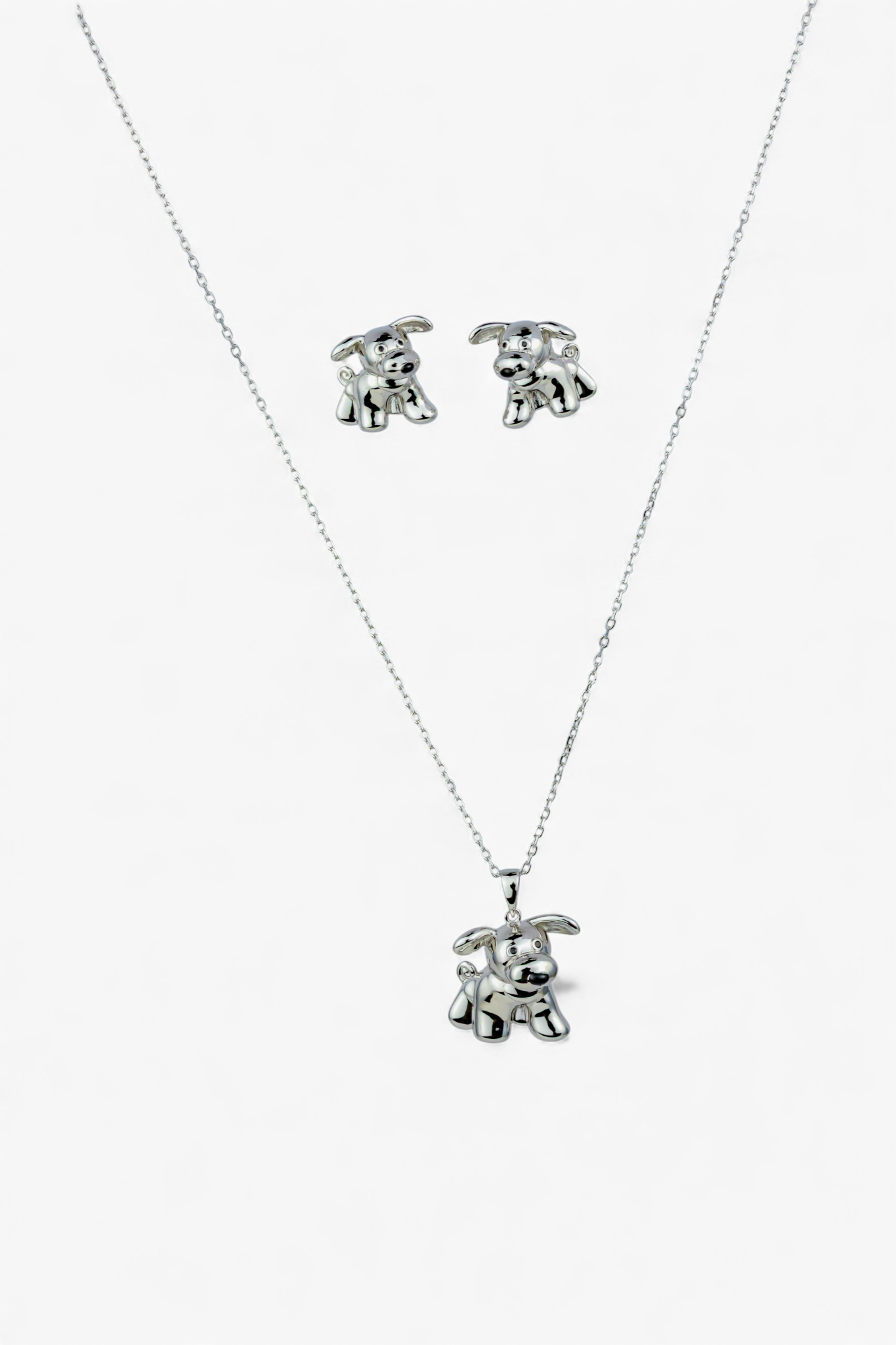 Show off your puppy love with this irresistible 3-piece jewelry set! It features a chunky, detailed design of a compact, adorable dog (like a Pug or Bulldog) with a bright silver-tone finish. The set includes a matching necklace pendant and two sculpted stud earrings. It’s the perfect gift for any dog mom, animal lover, or anyone who loves cute, high-quality animal jewelry."