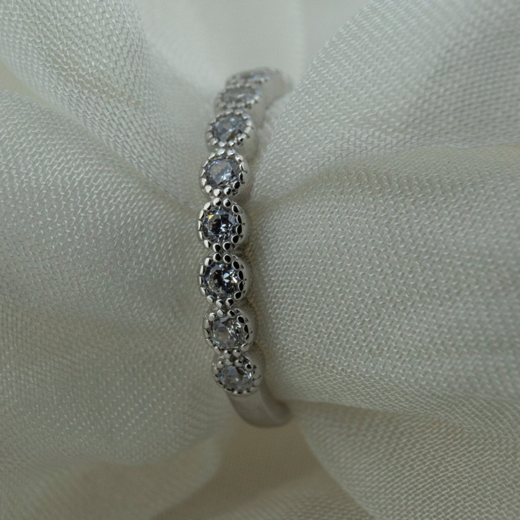 Miraura's Half Eternity Wedding Band features six brilliant round-cut stones set in a sleek 925 silver design. This timeless piece combines understated elegance with versatile styling—wear it solo or layer it with your favorite rings for a personalized look. Perfect for engagements, anniversaries, or everyday luxury, this classic band delivers sophisticated sparkle in a slim, comfortable fit.