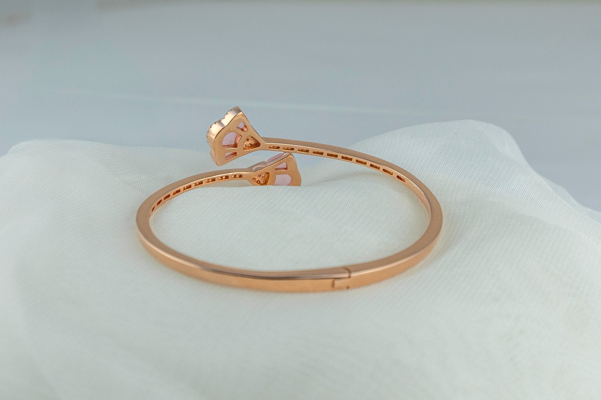 Miraura's Hammered Pink Gem Cuff combines rustic charm with contemporary elegance. This bypass bangle features a textured hammered finish in 925 silver, with sculpted settings cradling large faceted faux pink quartz stones at each open end. The flexible bypass design slips effortlessly onto your wrist, making it an ideal statement piece for collectors and anime-inspired jewelry enthusiasts. Perfect for layering or wearing solo, this limited-edition cuff delivers romantic sophistication with everyday wearability.