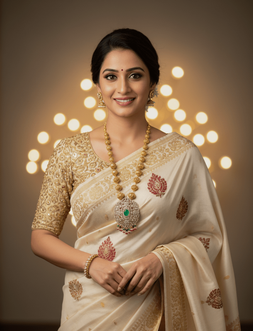 Discover timeless elegance with Miraura's Long Antique Beads Necklace, crafted in premium 925 Silver with an antique gold finish. This heritage-inspired piece features a lustrous chain of textured gold beads leading to a stunning statement pendant adorned with brilliant Moissanite Polki stones and a captivating emerald-colored center stone, finished with delicate bead drops. Perfect for collectors seeking authentic craftsmanship and traditional jewelry design that seamlessly blends classic simplicity with ornate Polki work.