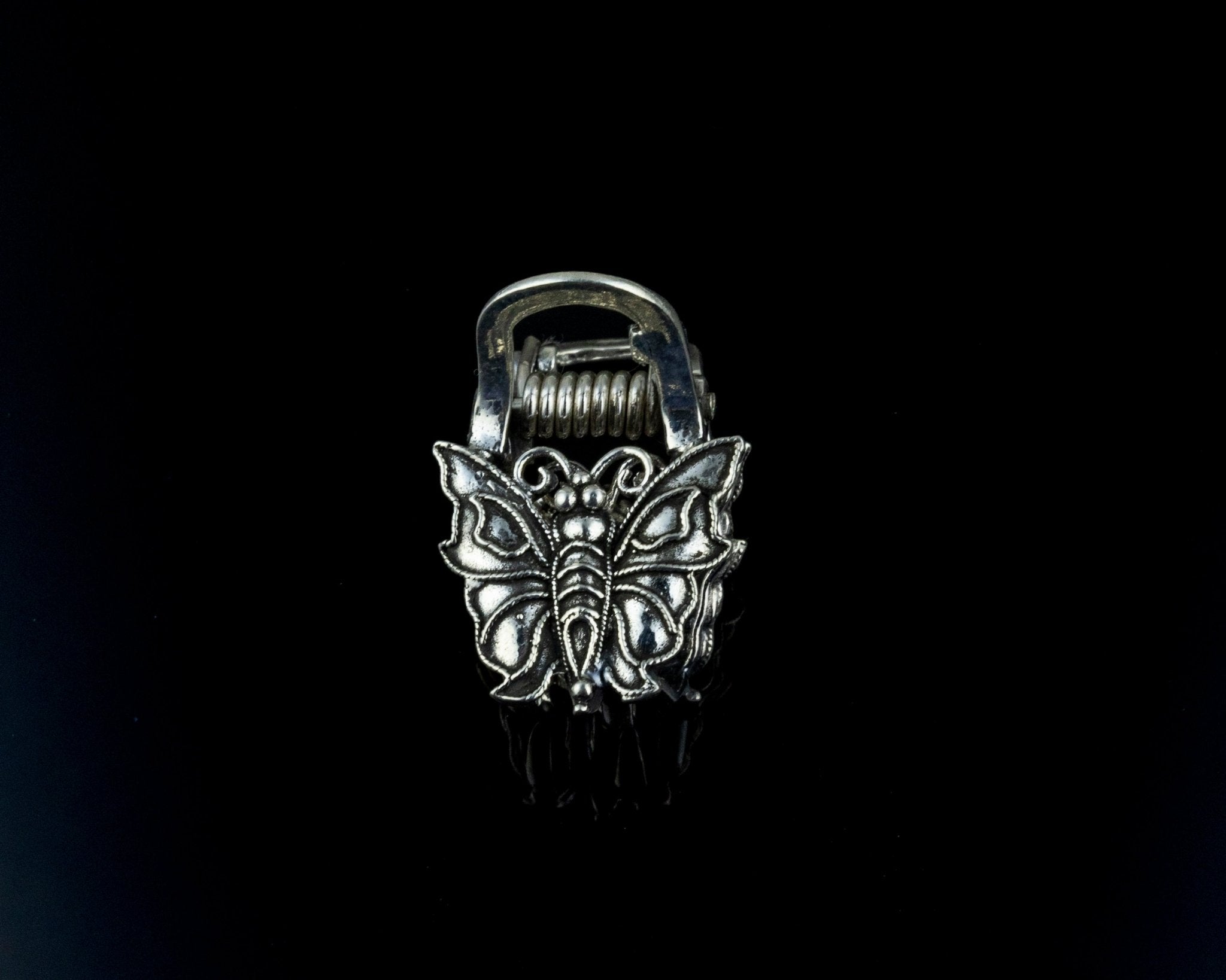 Miraura's Ornate Silver Butterfly Jaw Hair Clip features premium 925 silver with intricate Gothic-inspired metalwork. This vintage-styled accessory showcases an ornate butterfly design that adds mystique and elegance to any hairstyle. Perfect for those seeking bold, statement-making fashion, it combines dark sophistication with fantasy charm. Secure, durable, and timelessly enchanting—the ideal accessory for expressing your unique style.