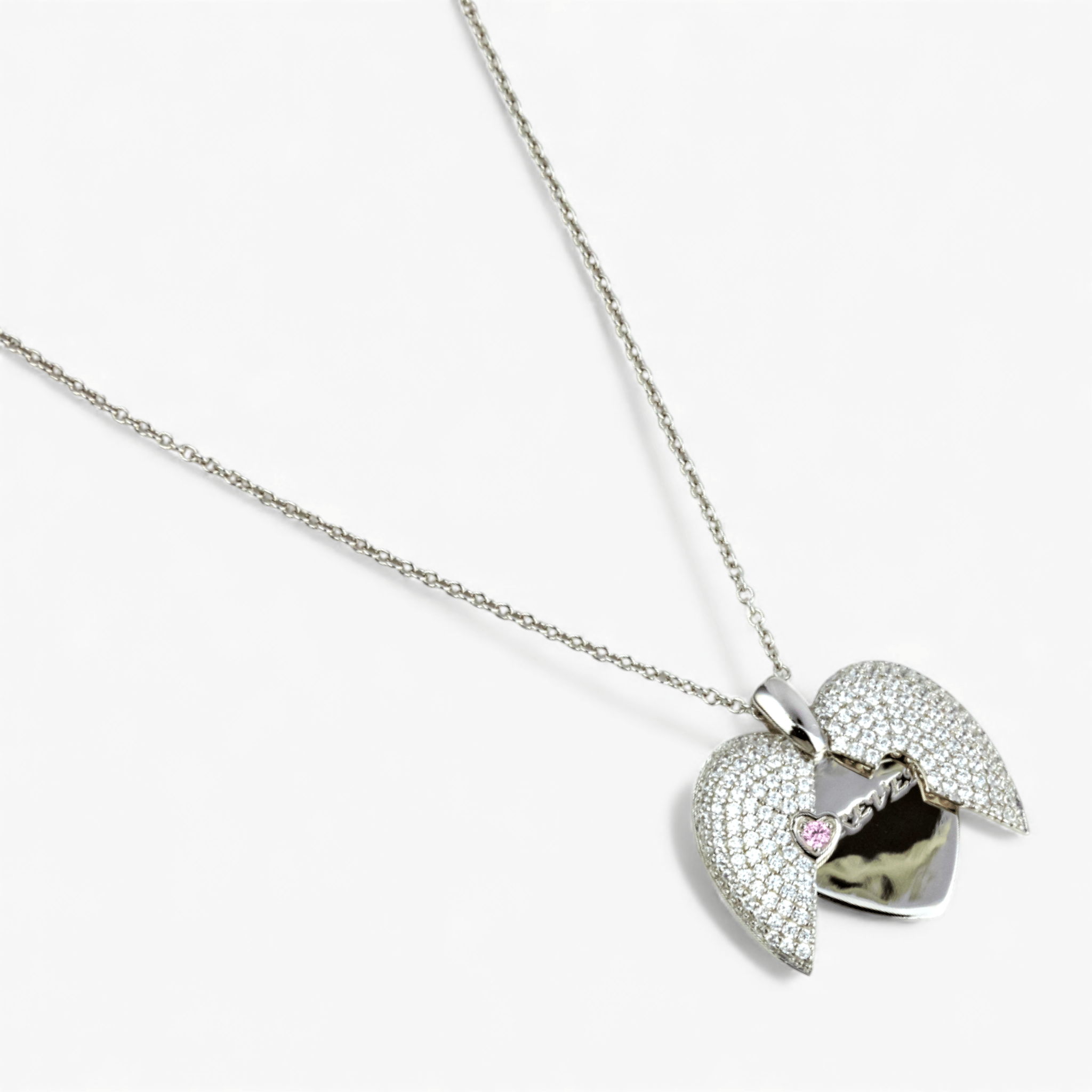 Iced Pave Split Heart Pendant in 925 Silver by Miraura Jewels. This glamorous statement piece features brilliant crystal pavé covering, a delicate center split, and a colored accent stone for romantic elegance. Perfect for collectors and anime-inspired jewelry enthusiasts seeking luxury pendants with timeless appeal.