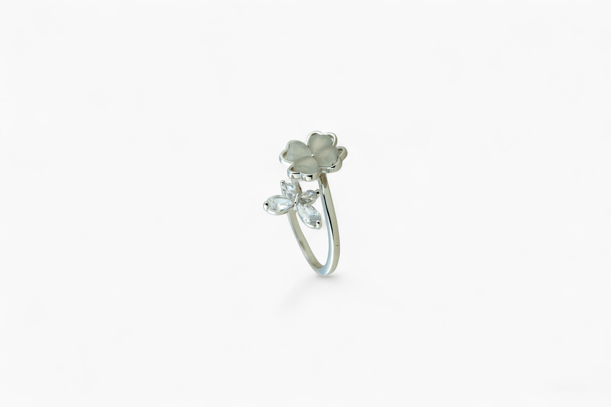 Miraura's Polished Clover Open Ring combines timeless elegance with modern design. This 925 silver bypass ring features a lucky four-leaf clover with smooth, polished heart-shaped petals paired with a sparkling cascade of marquise-cut cubic zirconia. The bright silver-tone finish catches light beautifully, making it perfect for everyday wear or special occasions. An adjustable open design ensures a comfortable fit for all. Embrace charm and sparkle with this stunning statement piece.